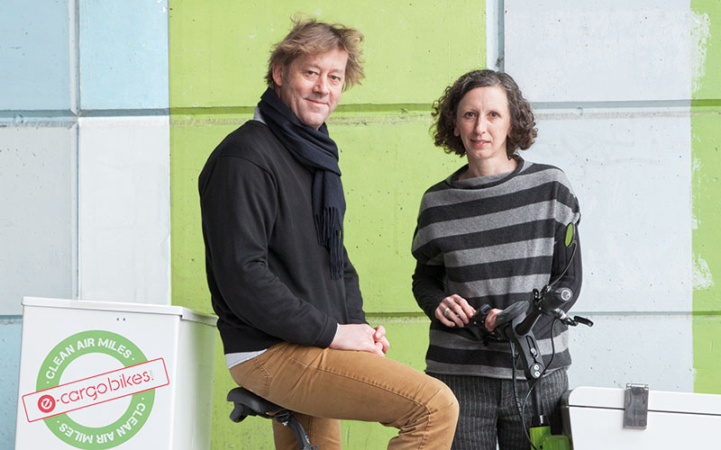 Wrapped up in winter coats and scarves, Clare Elwes and James FitzGerald are on the mezzanine level of their latest industrial unit. Hunched over a laptop, they are plotting to solve the headache of ‘last-mile’ deliveries with swarms of electric cargo bicycles.